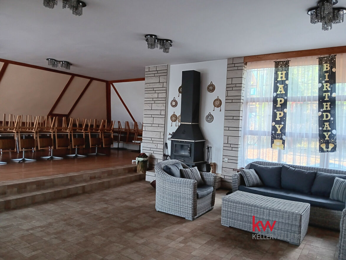 Oferuję Państwu obiekt w 1 linii brzegowej nad Zalewem Przeczyckim. Idealnie nadaje się na wszelkie szkolenia , kursy, spotkania integracyjne....... Budynek dwupoziomowy z dużym tarasem ( parter: sala szkoleń z kominkiem, na podwyższeniu miejsce np. na serwowanie posiłków, z zapleczem kuchennym, 2 toalety) w fantastycznej lokalizacji. Piętro : sala bilardowa z miejscami do wypoczynku.Budynek o powierzchni 180 m2 posadowiony jest na działce 730 m2 z przepięknym widokiem na zalew. Idealnie nadaje się na wszelkiego rodzaju szkolenia, eventy, zgrupowania....... W cenie udziały w drodze (dostęp do drogi publicznej) oraz zalewu. Do nieruchomości przynależy domek narzędziowy w którym rownież można składować drewno do kominka.
